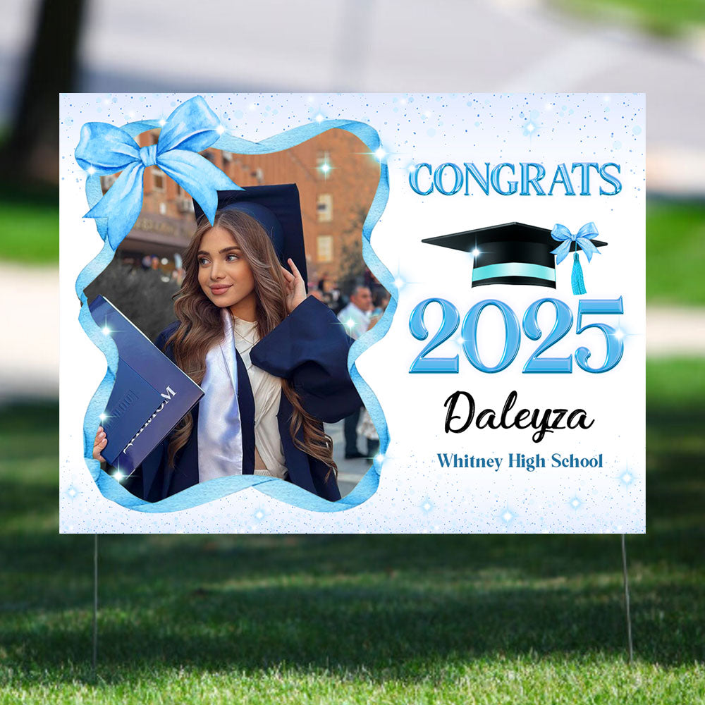 Class Of 2025 Bow Style - Personalized Graduation Lawn Sign With Stake