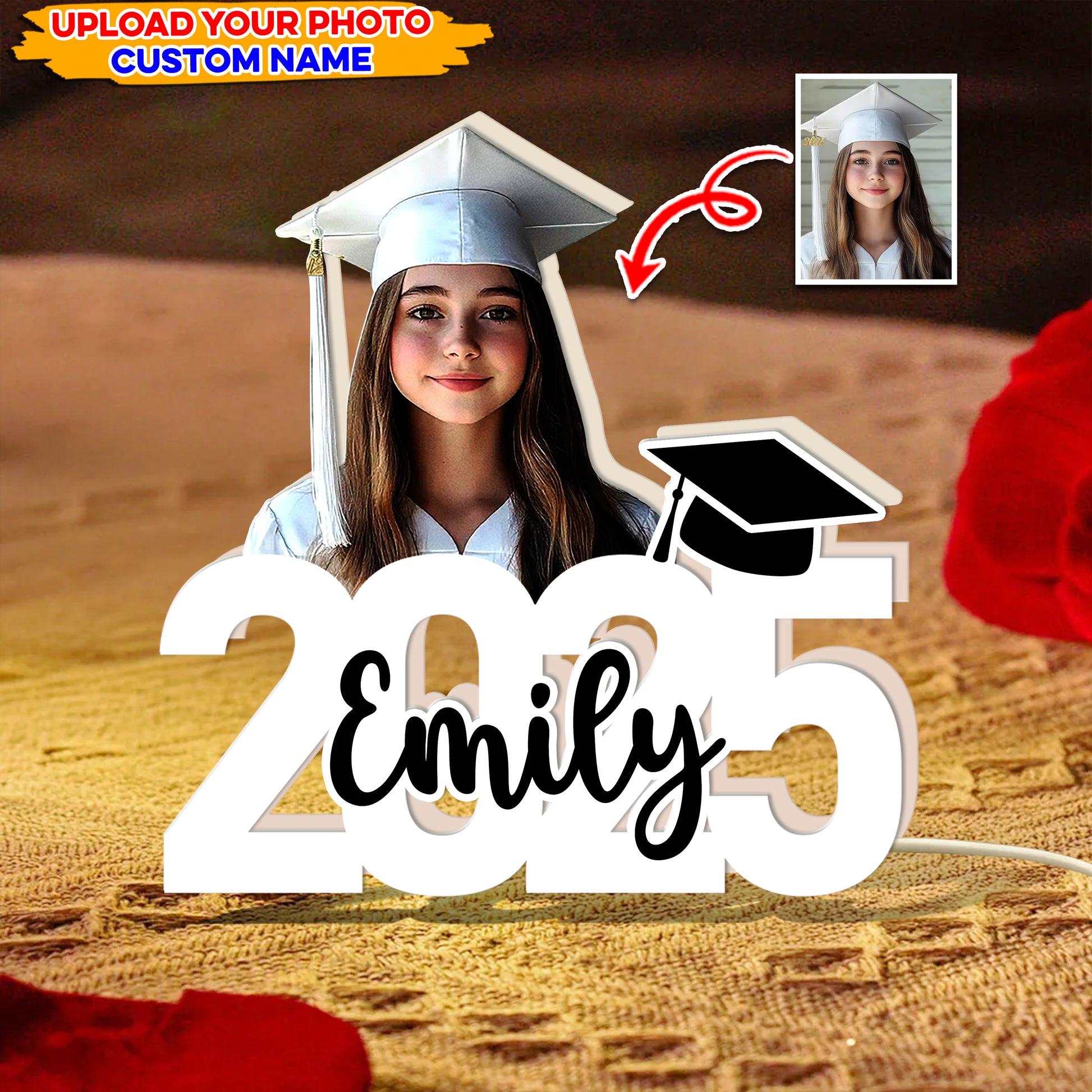 *** In case you are UNABLE TO UPLOAD photo, feel free to add cart and checkout as usual. Then send us your order number and photo to our email: support@gradcustom.com