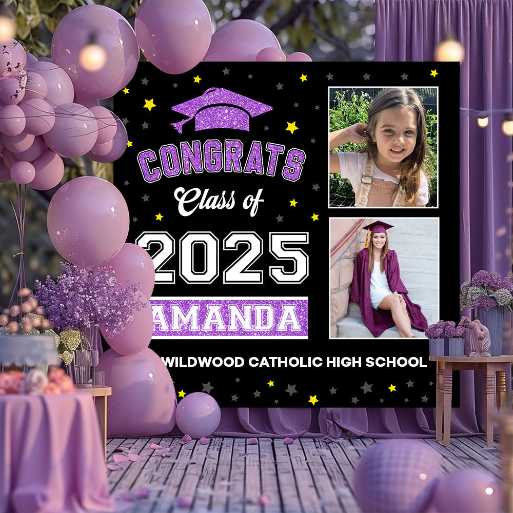 Make your graduation party so extra, even Grandma will call it lit 🔥. A personalized graduation photo backdrop with their name, school, and achievements? It’s like rolling out the red carpet for your star of the day. After all, you only graduate once (or twice, if you’re really good at it).
