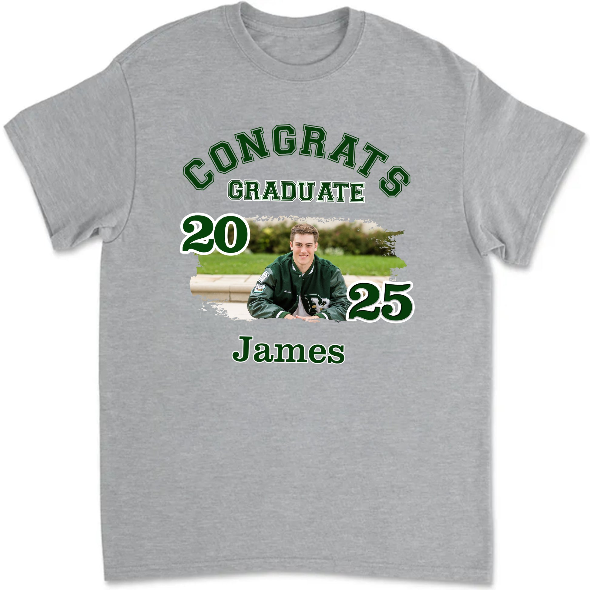 Customizing your Graduation T-Shirt is easy! You can add names, graduation dates, and special messages during the order process on the website to make the shirt unique to your family.