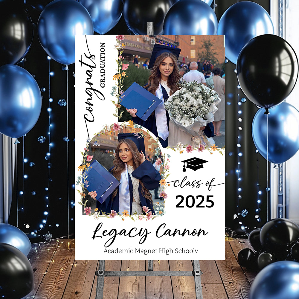 Looking for the perfect way to celebrate your graduation? Our custom graduation welcome sign is here to make your party unforgettable! Personalize it with your name, photos, and a special message to create a personalized party welcome sign that wows your guests. Made with high-quality materials, it’s the ideal keepsake for your big day.
