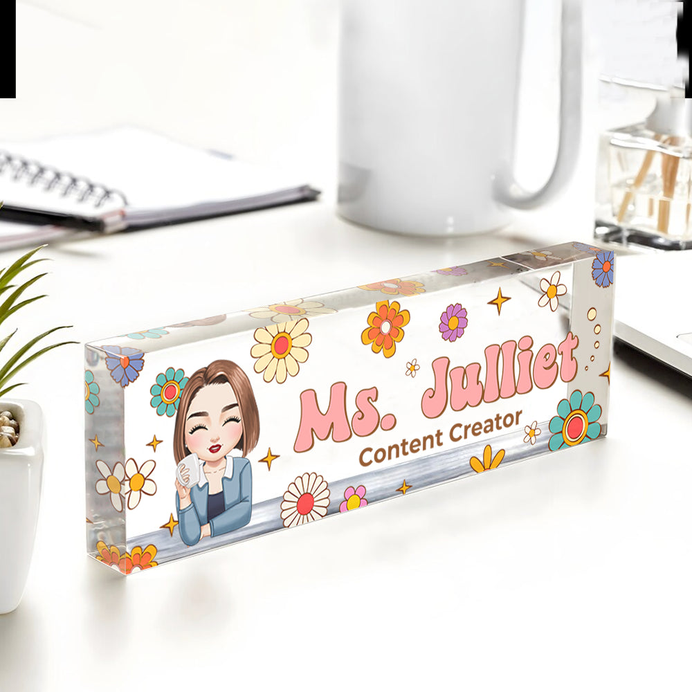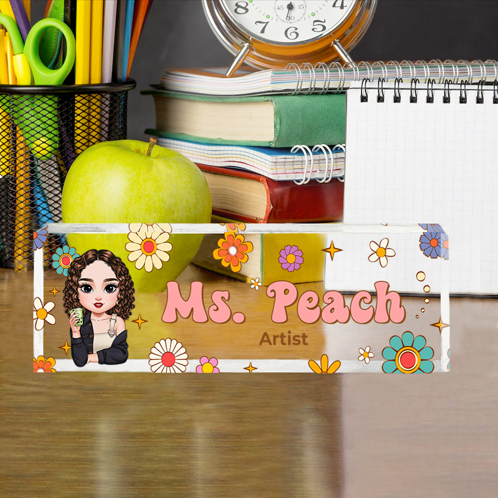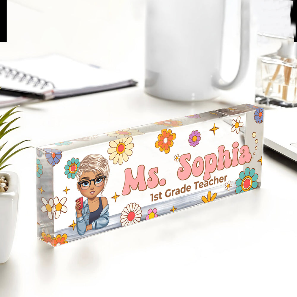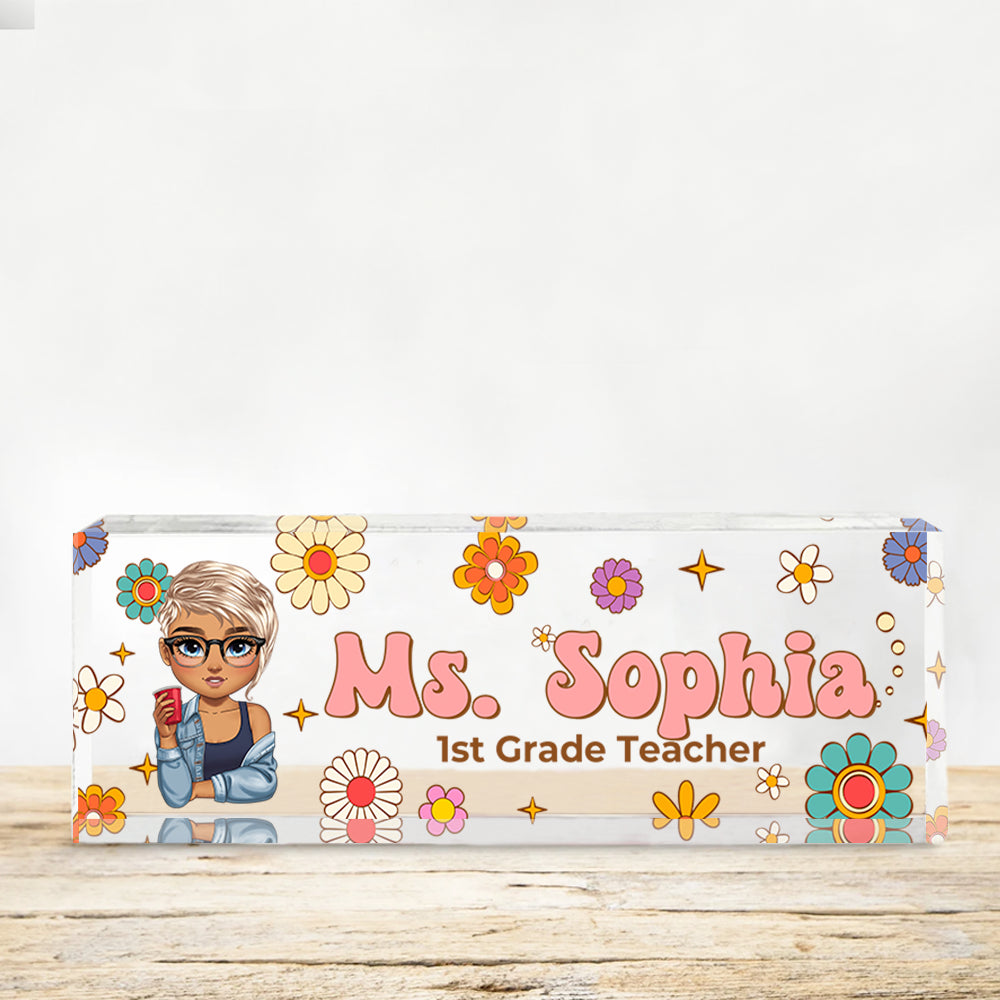 Custom Hippie Flowers Magic Teacher Name - Personalized Teacher Name Sign for Desk - Acrylic Desk Name Plate - Gift For Teacher