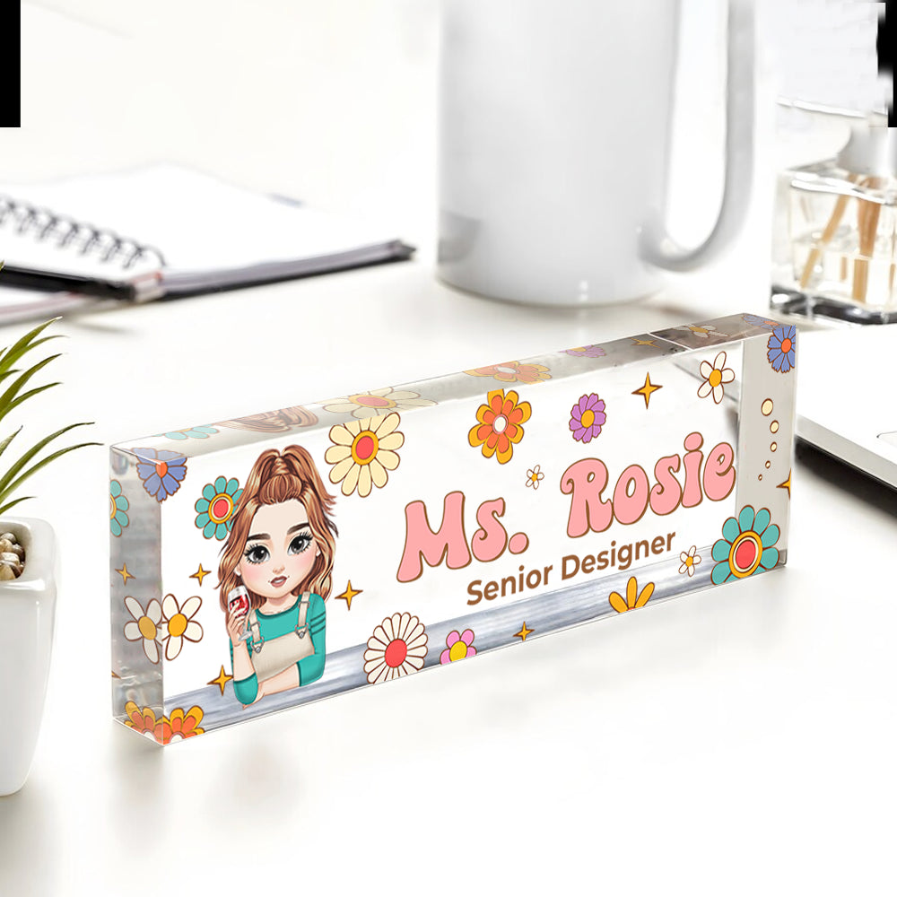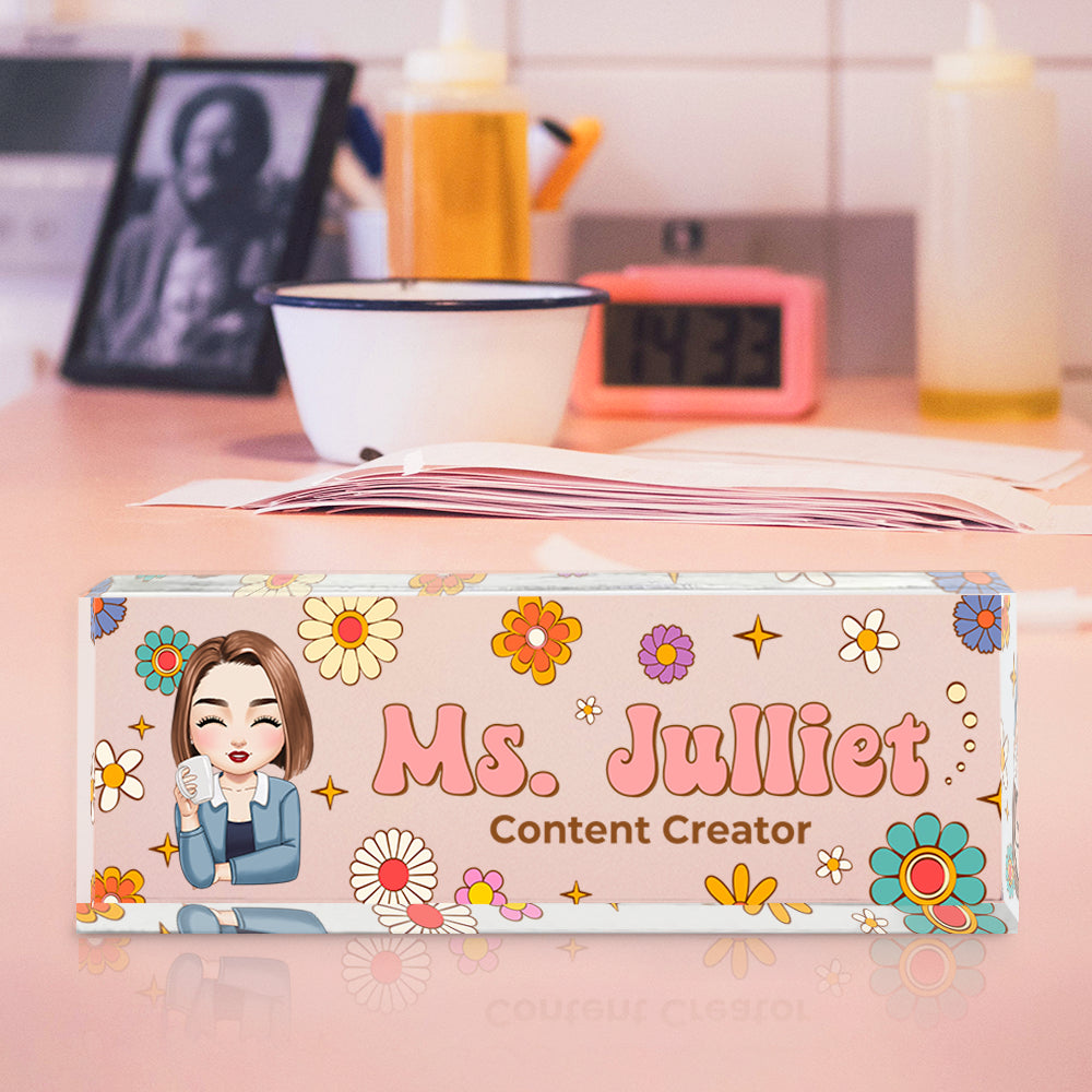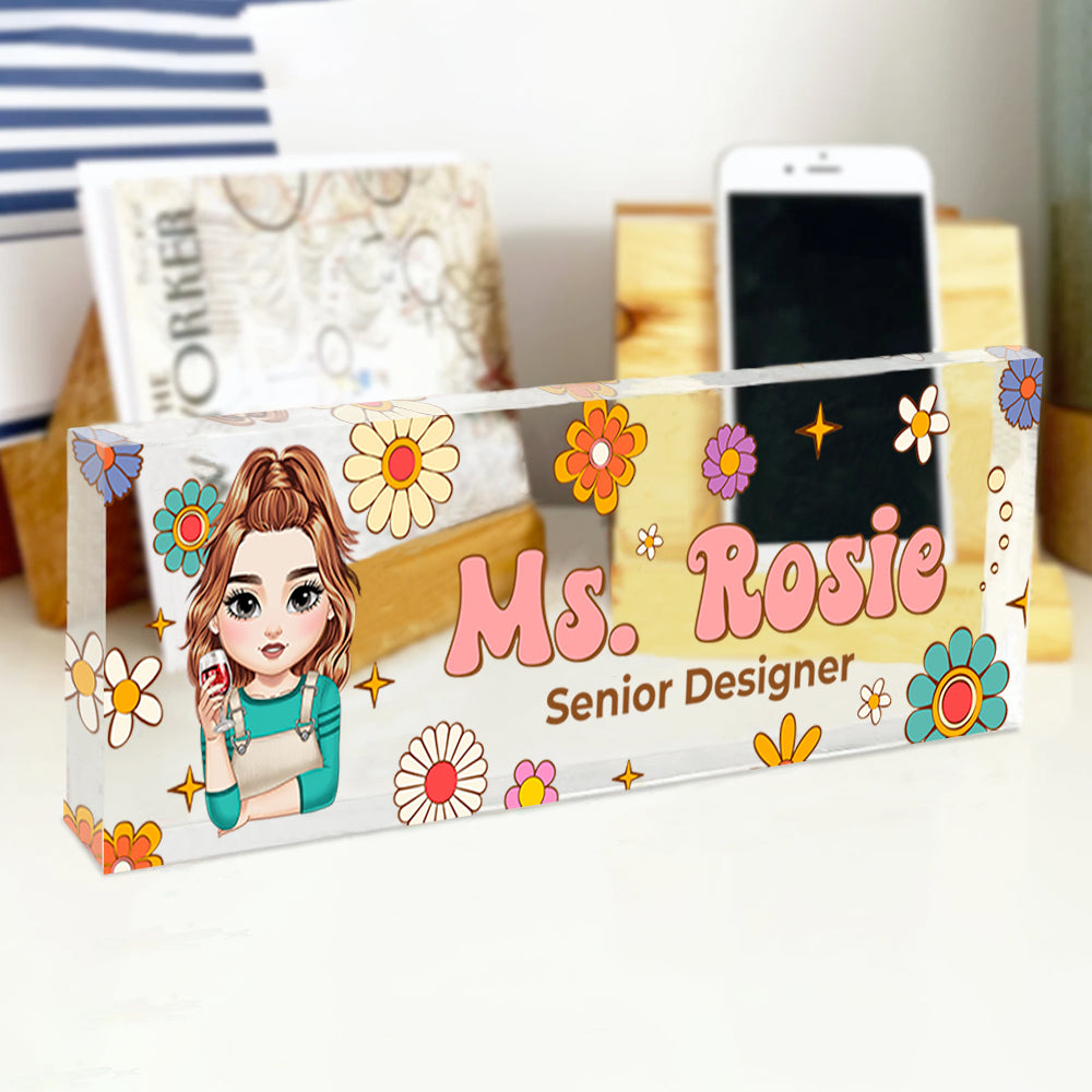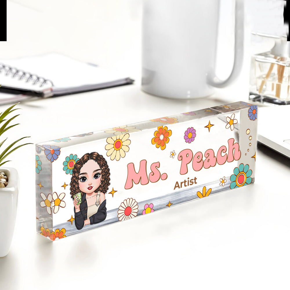 Custom Hippie Flowers Magic Teacher Name - Personalized Teacher Name Sign for Desk - Acrylic Desk Name Plate - Gift For Teacher