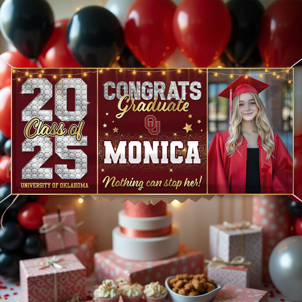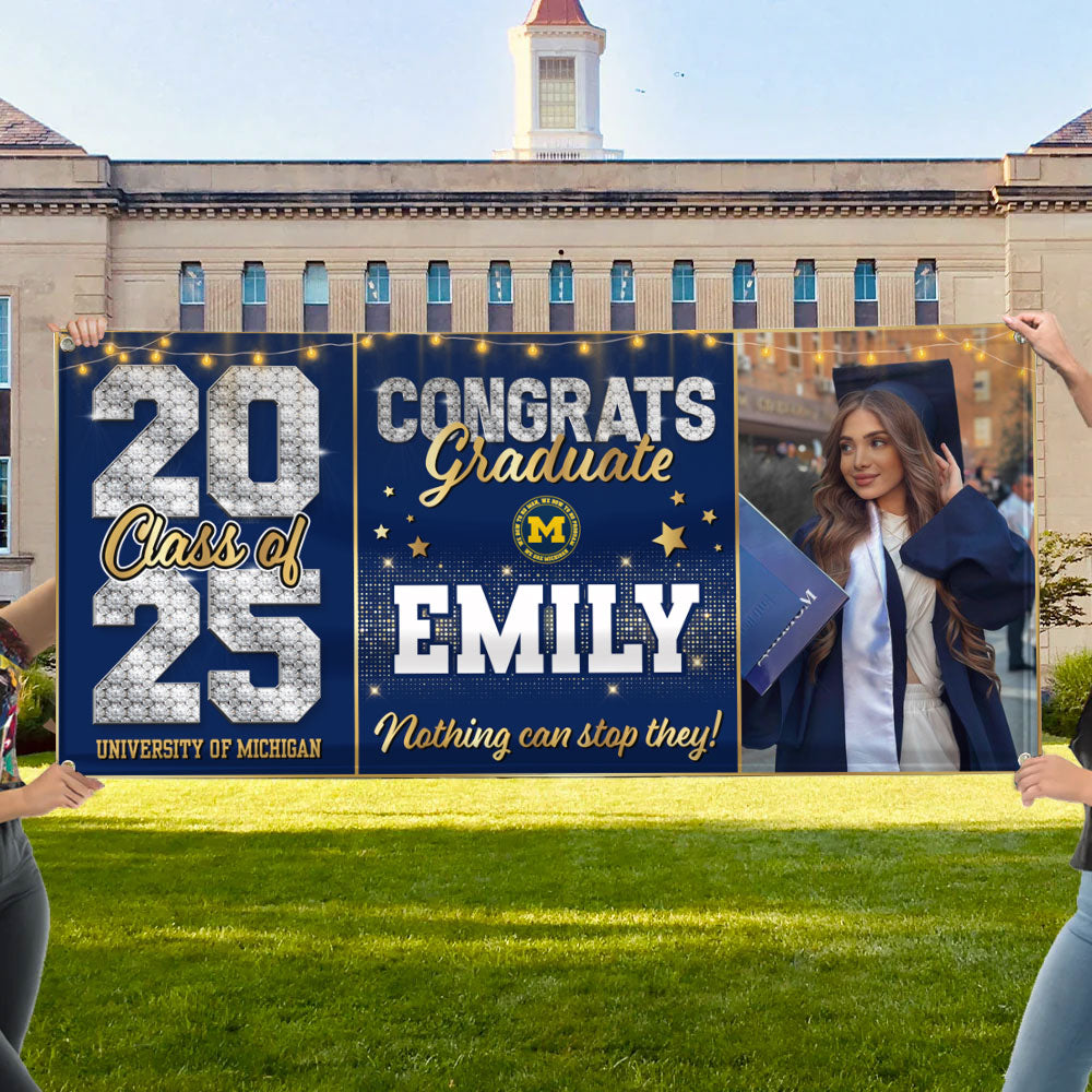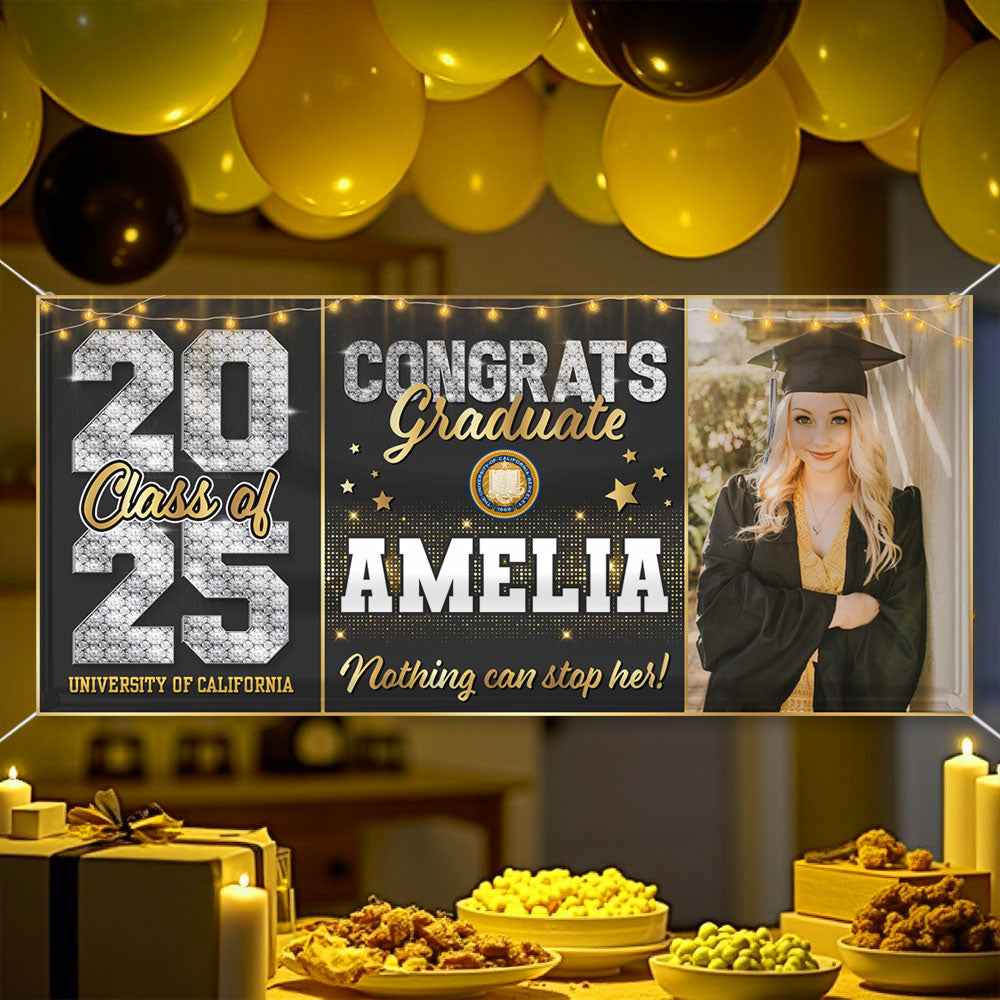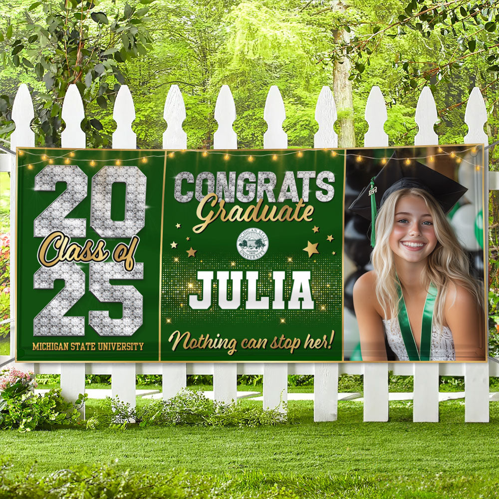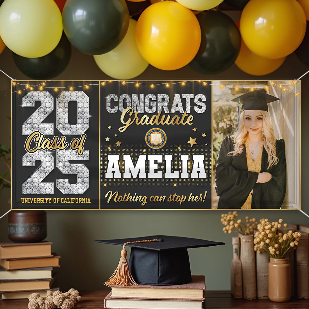 Our custom graduation banners are made from heavyweight fabric, designed to be thick, durable, and completely opaque for a premium look and feel. The vibrant, fade-resistant colors ensure your banner stands out. This isn’t just a banner—it’s a high-quality keepsake that celebrates your graduate’s achievements in style.
