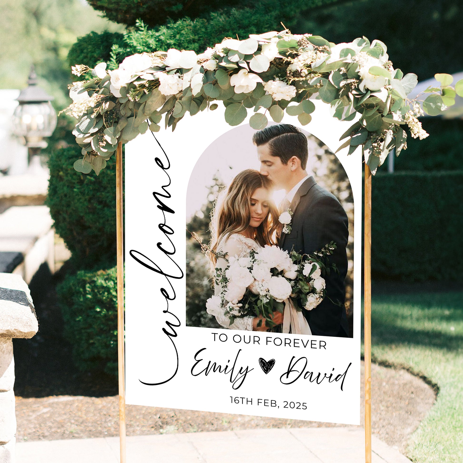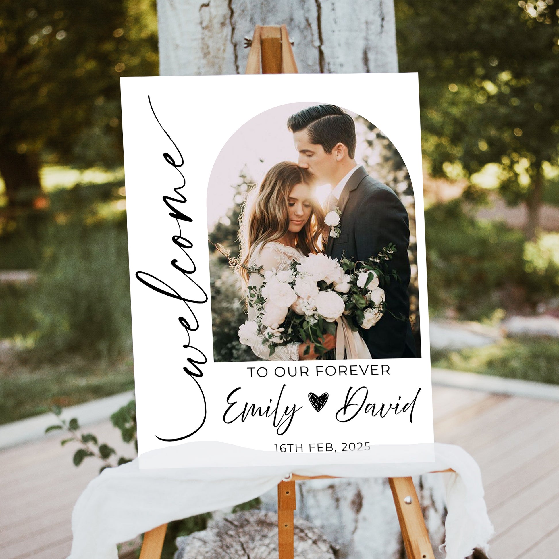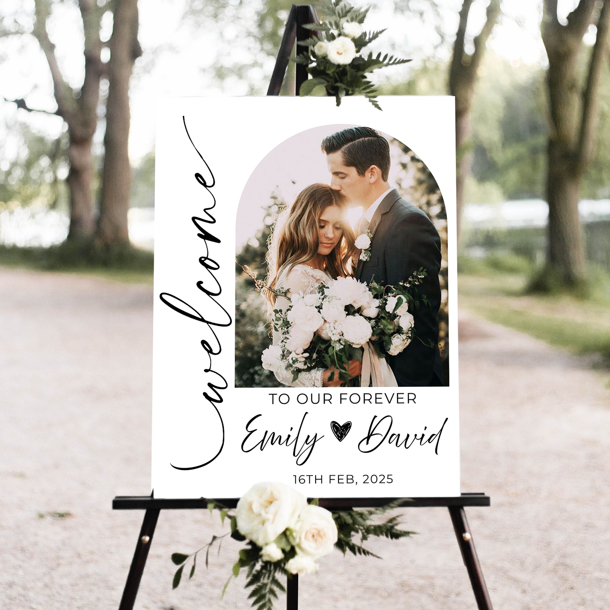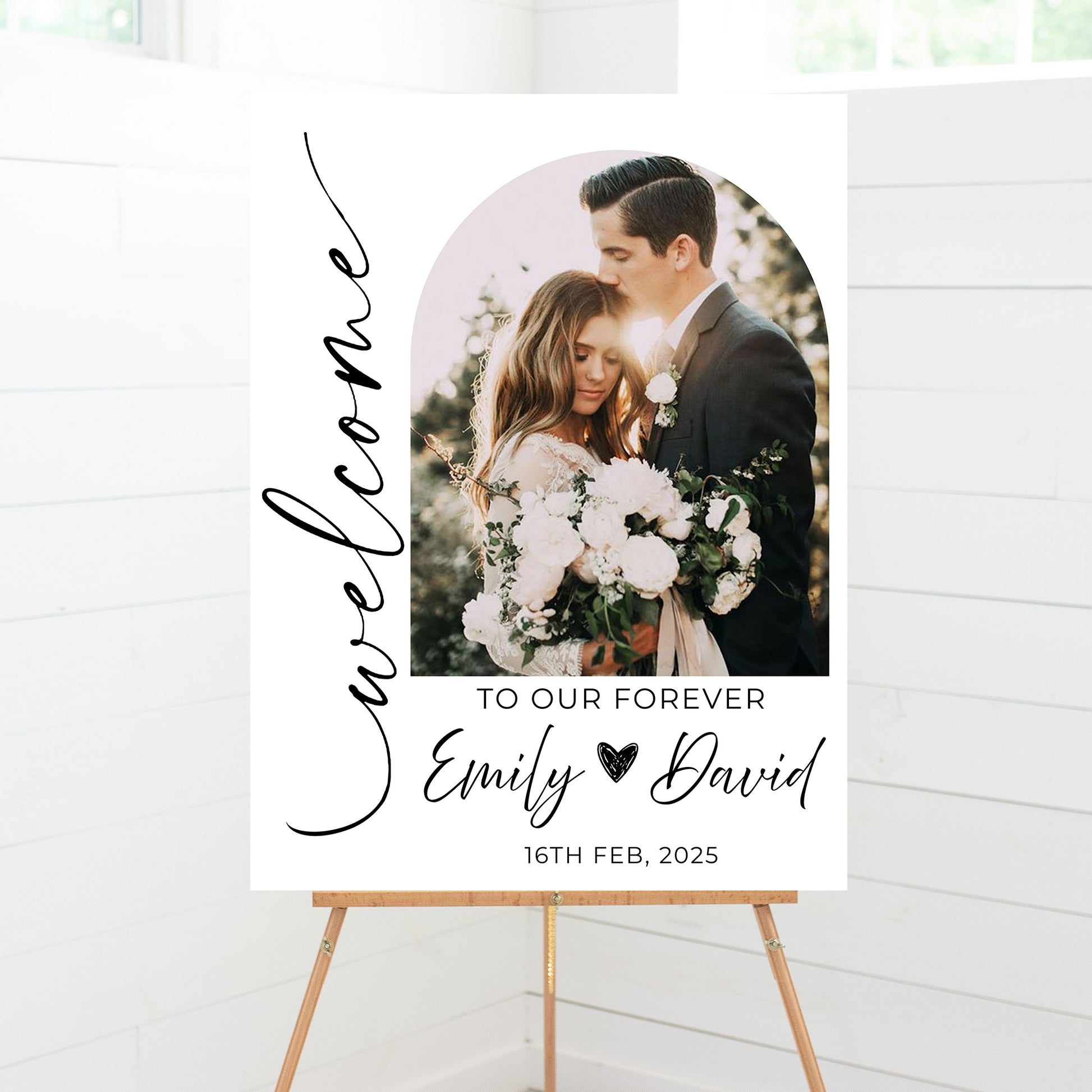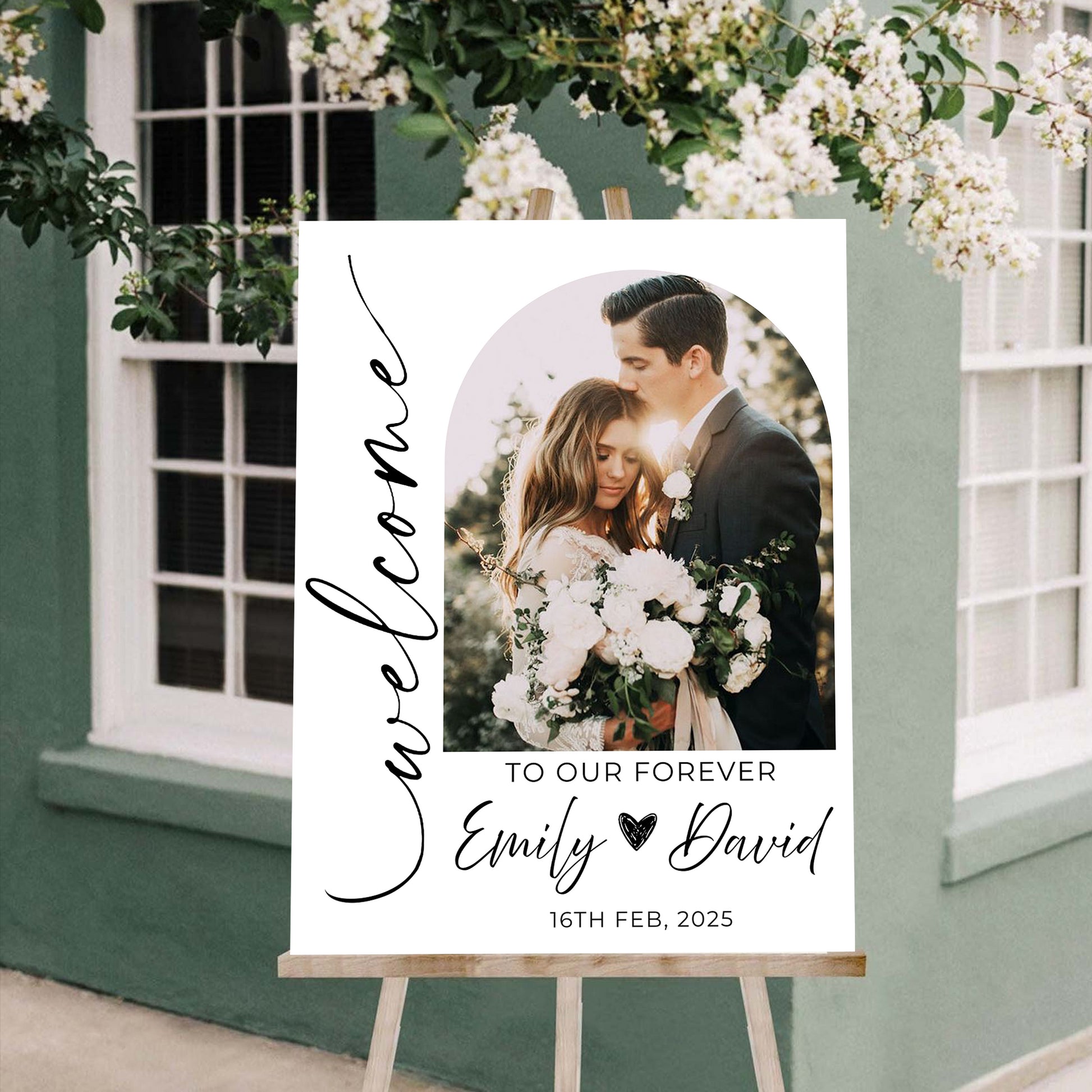 This elegant Wedding Welcome Sign, artfully crafted with your name and wedding date, creates a warm and inviting atmosphere when guests arrive. Celebrate your love story with a touch of sophistication that perfectly complements the magic of your special day.