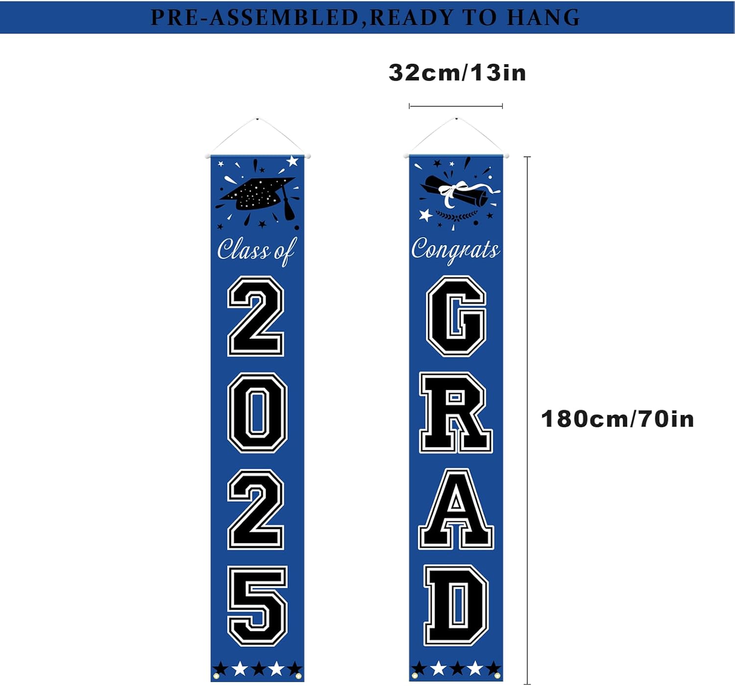Graduation Door Banner, 2025 Grad Congratulations Front Door Hanging Banner, for Garage Doorframe - Blue