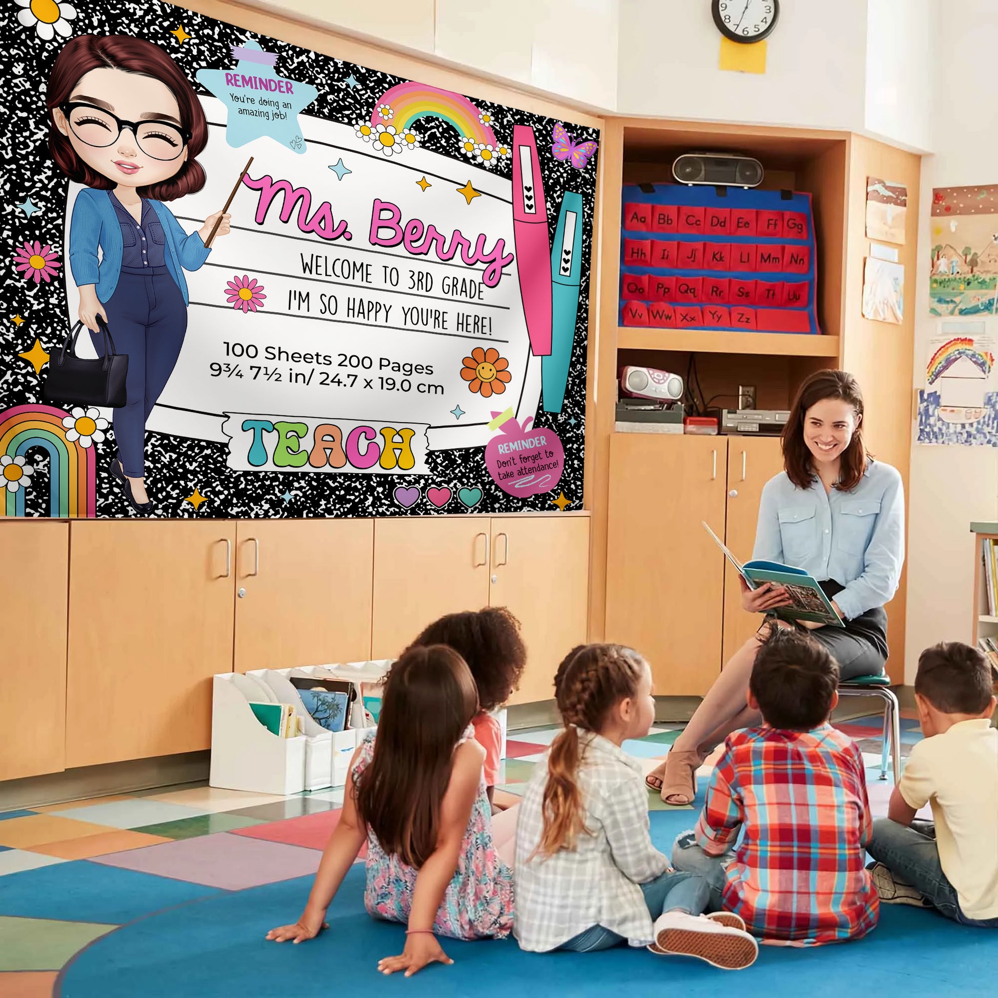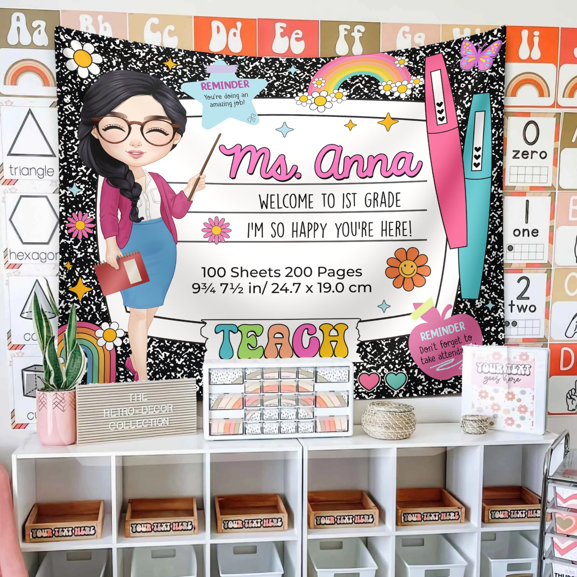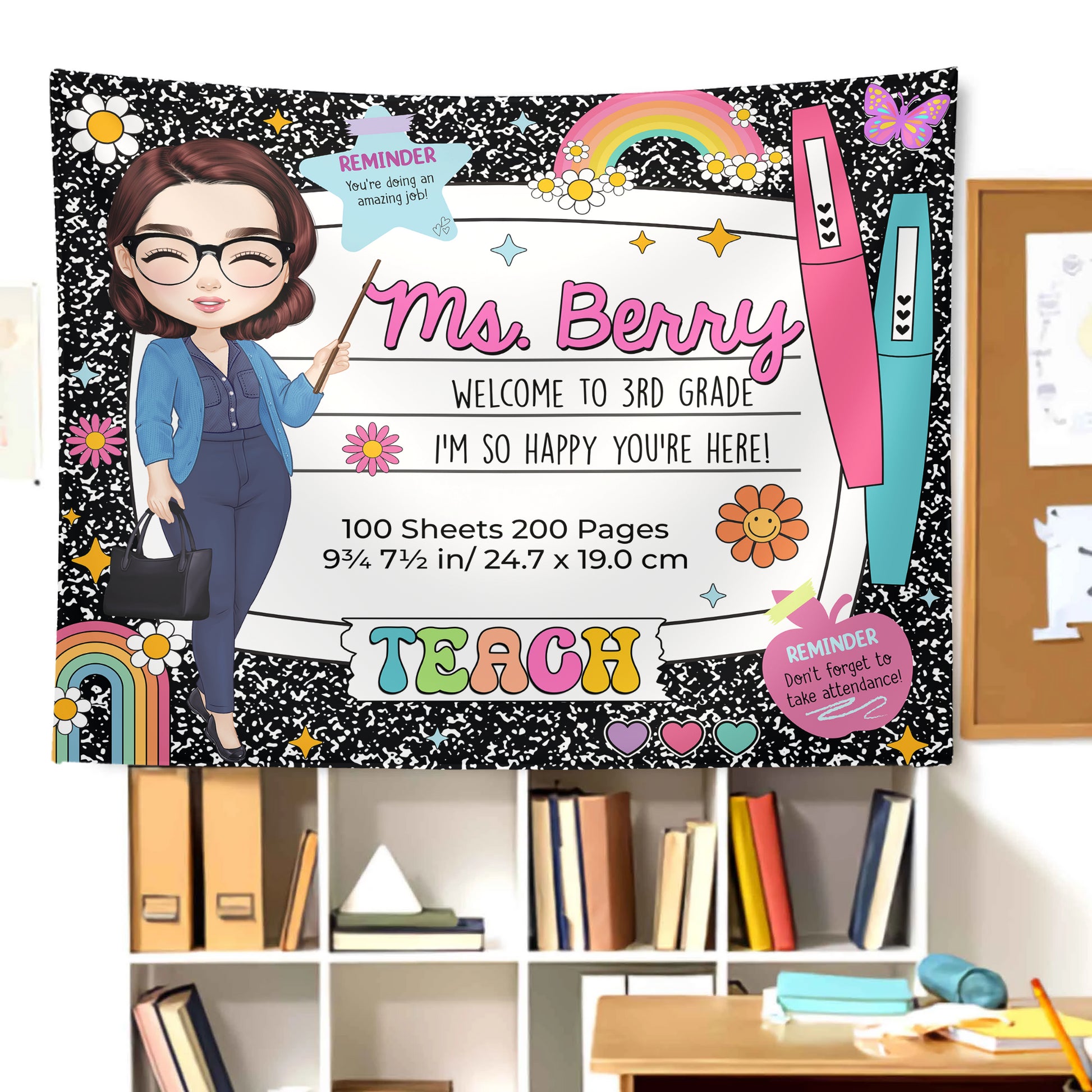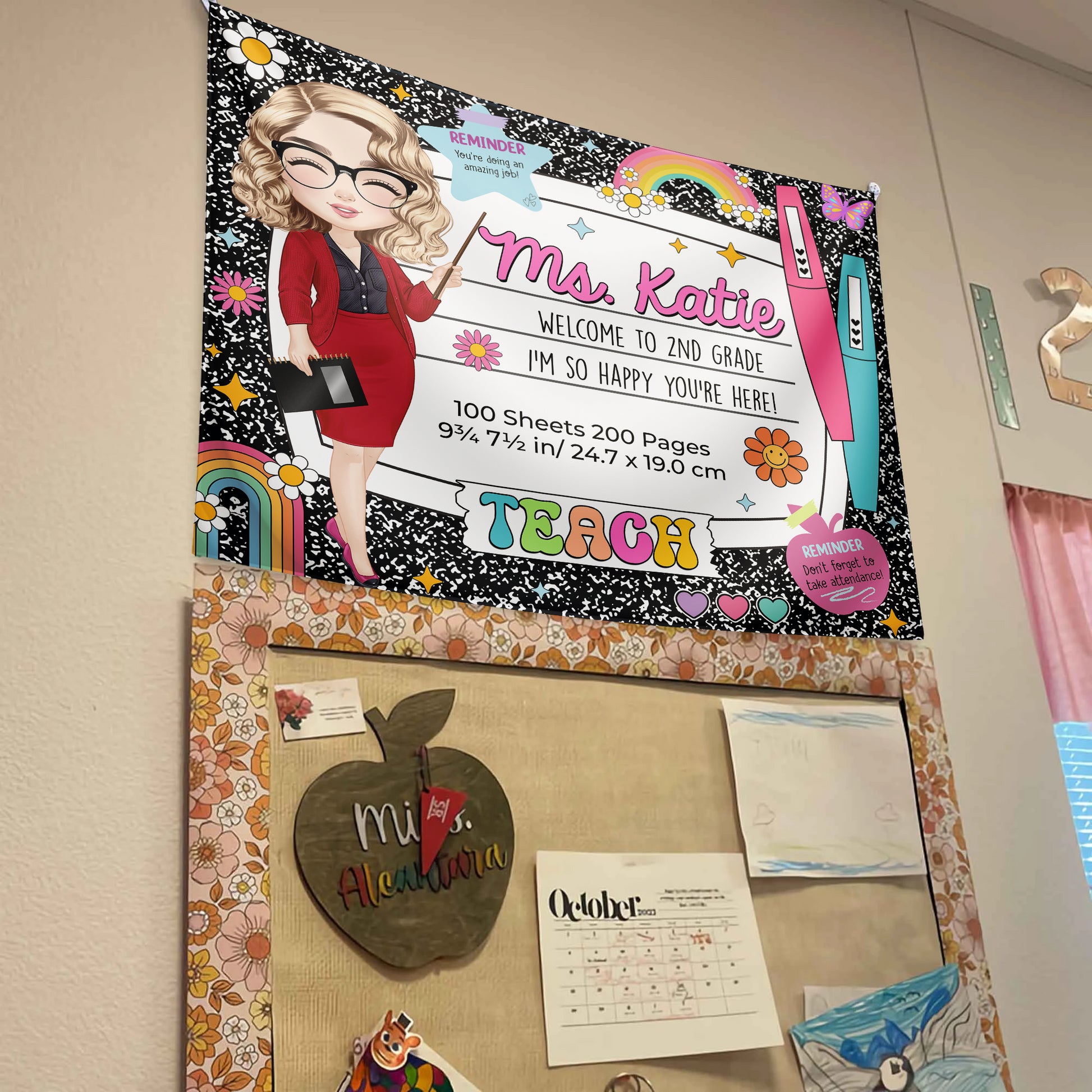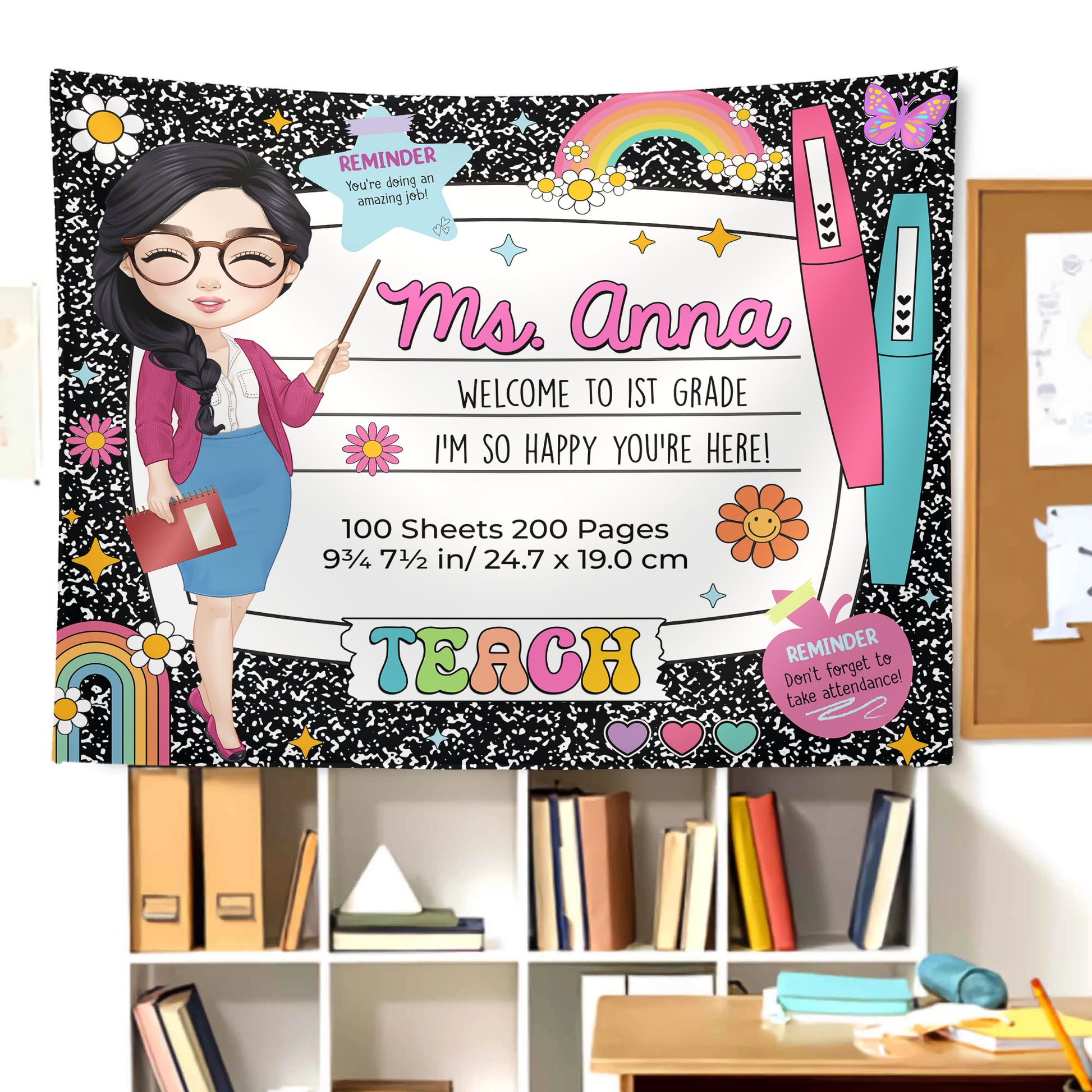Welcome back to school with the Personalized Composition Notebook Classroom Banner! 📝✨ This beautiful wall hanging is the perfect decoration for your classroom, adding a warm, inviting touch to your workspace. This banner is a great way to greet students and make them feel at home. 🎉