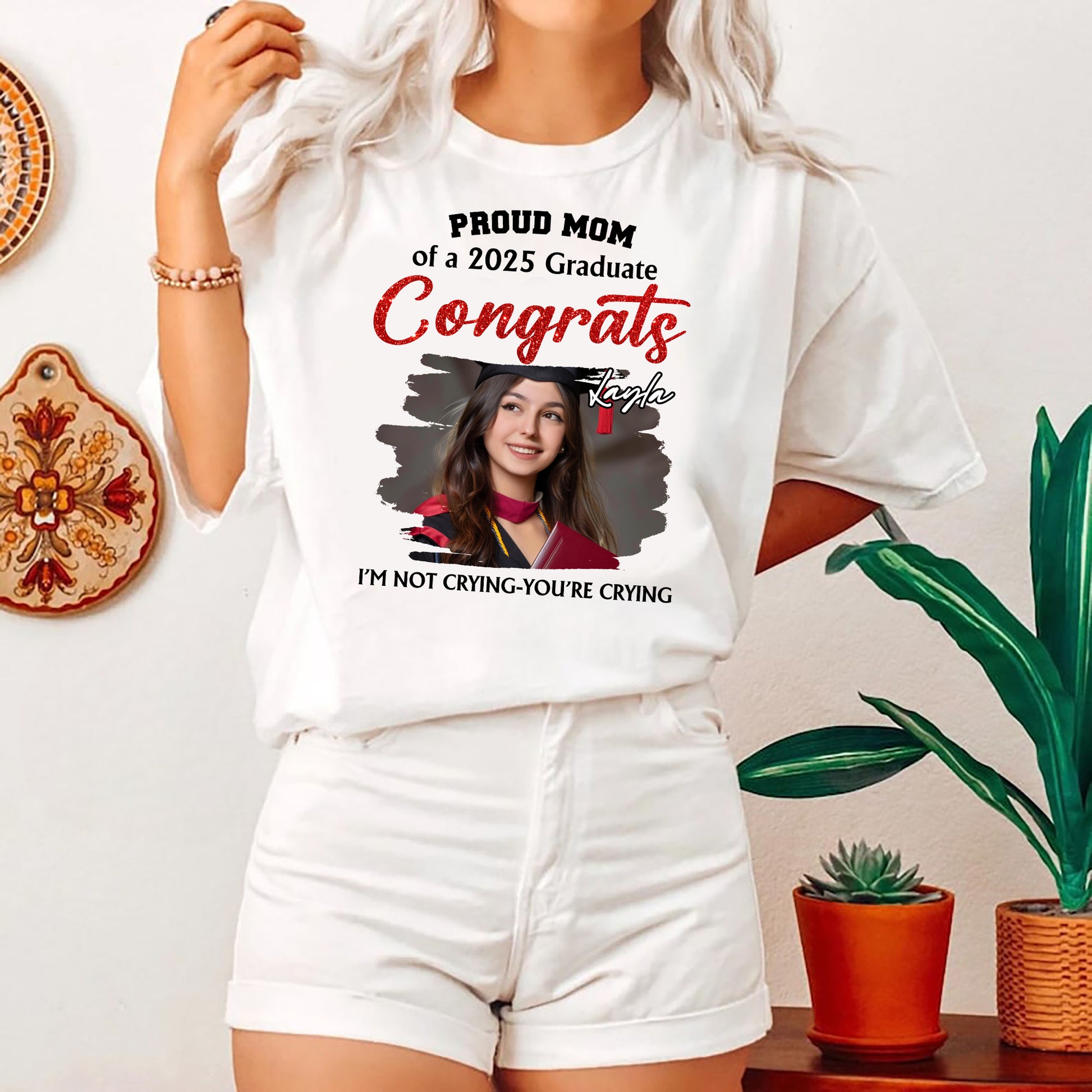 This personalized t-shirt is typically made from high-quality cotton. This ensures that the shirt is not only comfortable to wear but also durable enough to withstand frequent use. The fabric choice allows for breathability, making it suitable for various occasions, including graduation ceremonies, family gatherings, or casual outings.