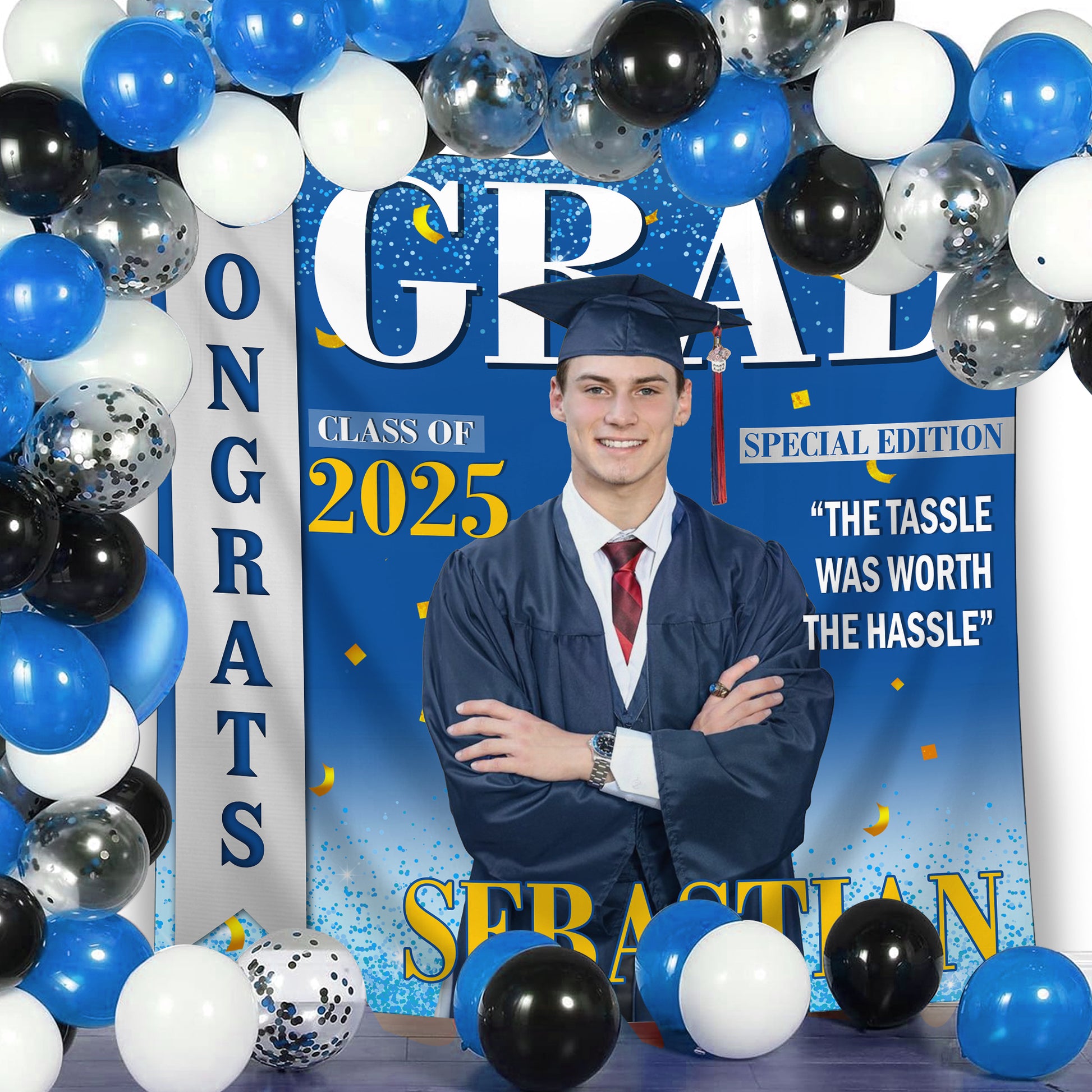 * Why Choose Custom? Celebrate Uniqueness: Graduation is a milestone worth celebrating in a way that’s as unique as the graduate. A personalized graduation photo backdrop lets you showcase their name, school, and achievements, turning it into a proud centerpiece of the event.