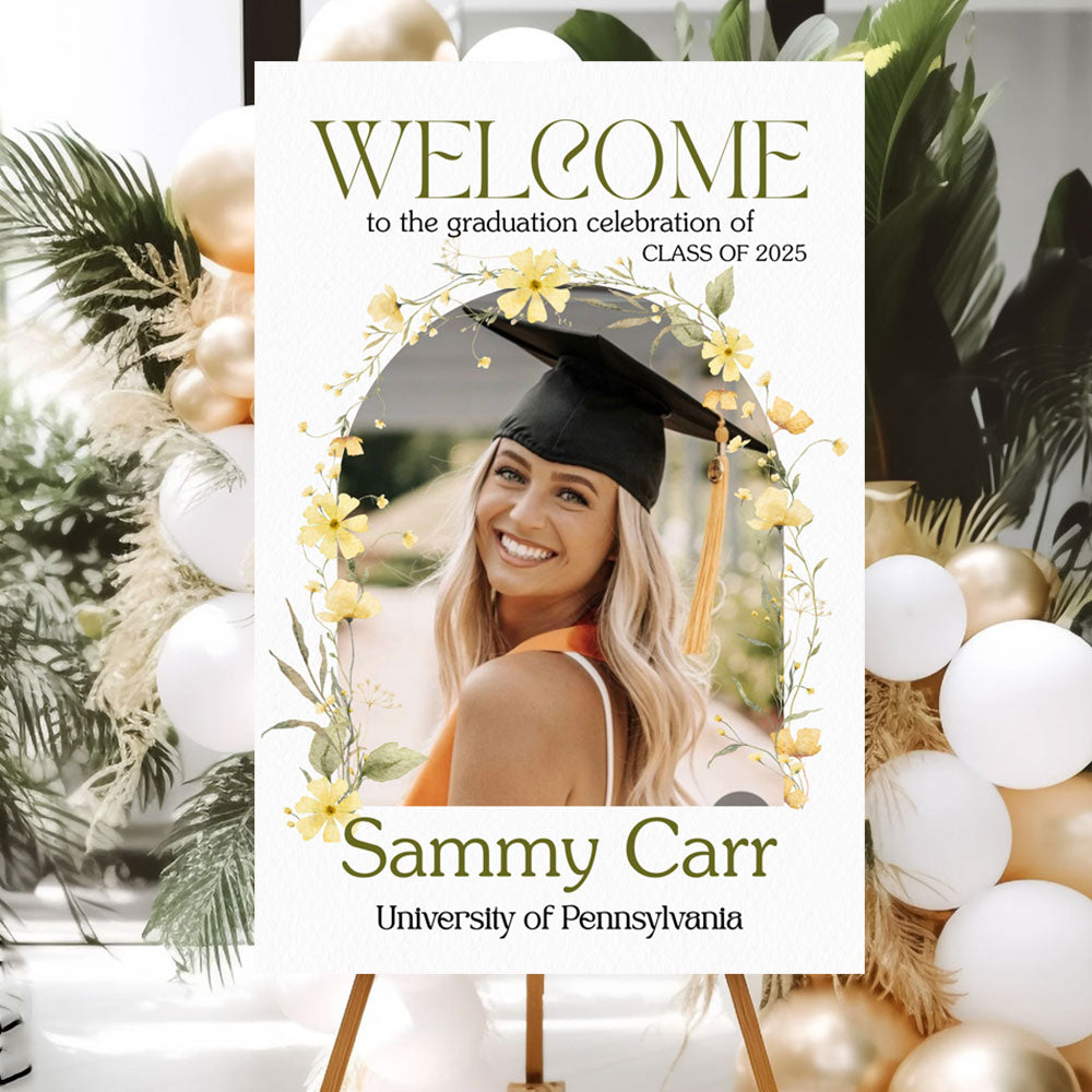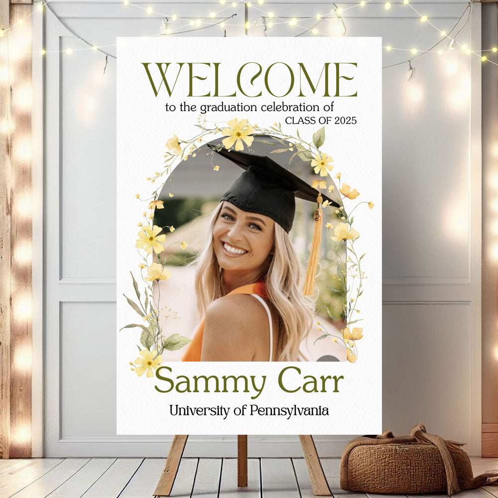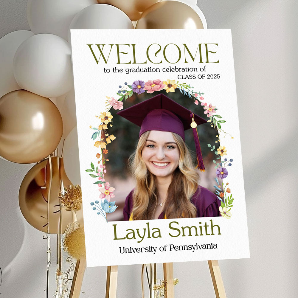 Looking for the perfect way to celebrate your graduation? Our custom graduation welcome sign is here to make your party unforgettable! Personalize it with your name, photos, and a special message to create a personalized party welcome sign that wows your guests. Made with high-quality materials, it’s the ideal keepsake for your big day.